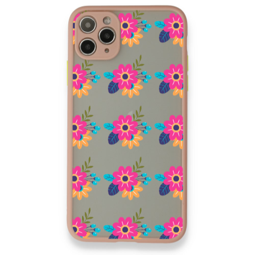 Apple iPhone 12 Pro Max Karışık Çiçek3 Pembe Hux Telefon Kılıfı