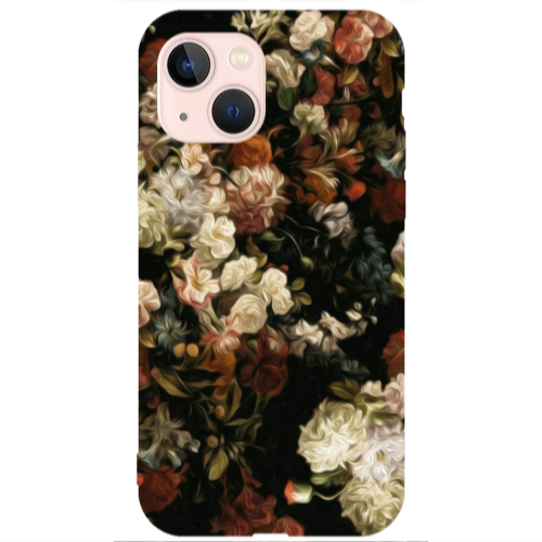 Apple iPhone 13 Mini Karışık Çiçek Koyu Yeşil Renkli Silikon Telefon Kılıfı