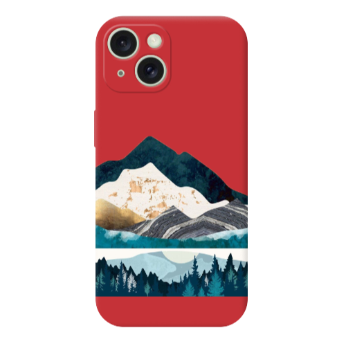 Apple iPhone 15 Plus Karışık Dağ2 Kırmızı Renkli Silikon Telefon Kılıfı