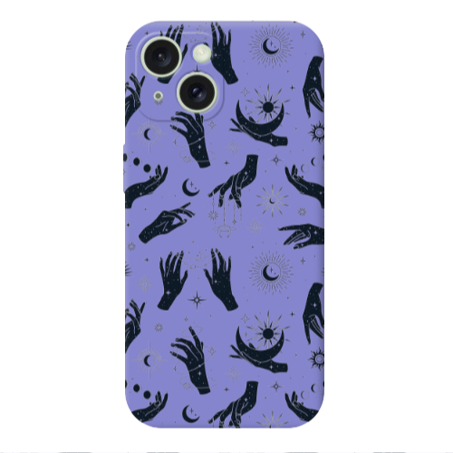 Apple iPhone 15 Karışık El Lila Renkli Silikon Telefon Kılıfı