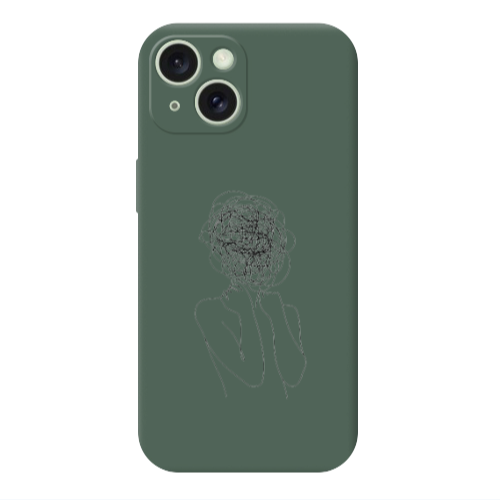 Apple iPhone 15 Plus Karışık Kafa Koyu Yeşil Renkli Silikon Telefon Kılıfı