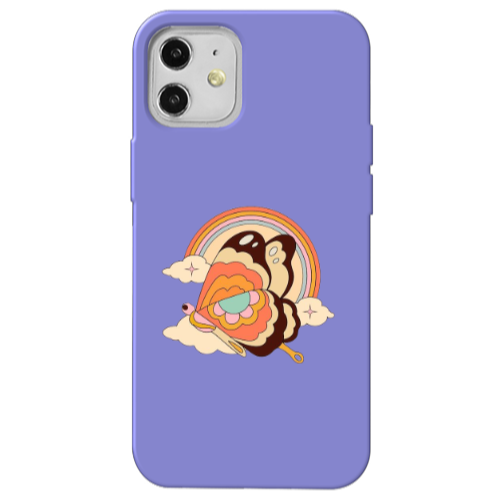 Apple iPhone 12 Karışık Kelebek Lila Renkli Silikon Telefon Kılıfı
