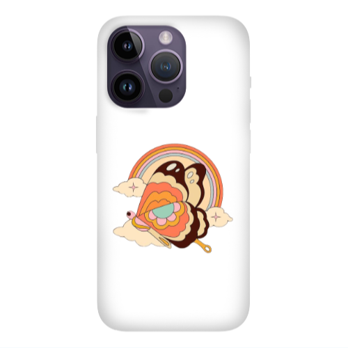 Apple iPhone 14 Pro Max Karışık Kelebek Beyaz Renkli Silikon Telefon Kılıfı