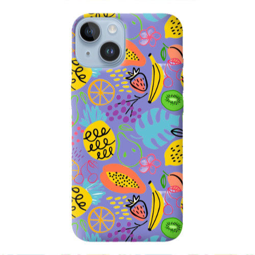 Apple iPhone 14 Karışık Meyve3 Lila Renkli Silikon Telefon Kılıfı