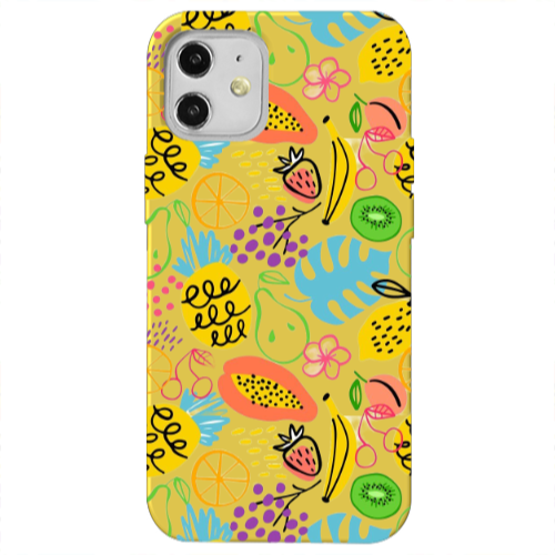 Apple iPhone 12 Mini Karışık Meyve3 Sarı Renkli Silikon Telefon Kılıfı
