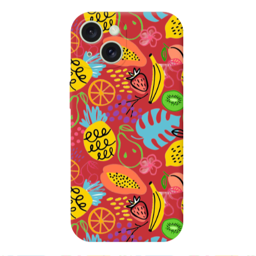 Apple iPhone 15 Karışık Meyve3 Kırmızı Renkli Silikon Telefon Kılıfı