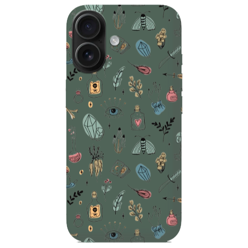 Apple iPhone 16 Karışık Tarot Koyu Yeşil Renkli Silikon Telefon Kılıfı
