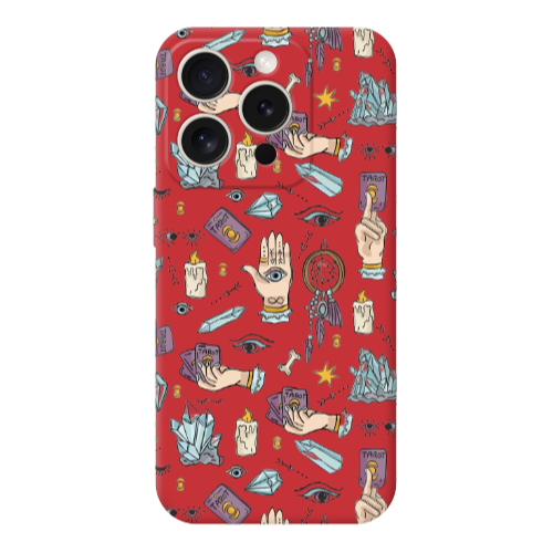 Apple iPhone 15 Pro Max Karışık Tarot3 Kırmızı Renkli Silikon Telefon Kılıfı