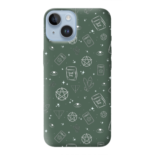 Apple iPhone 14 Karışık Tarot4 Koyu Yeşil Renkli Silikon Telefon Kılıfı