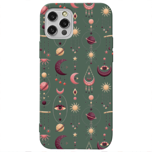 Apple iPhone 12 Pro Max Karışık Tarot5 Koyu Yeşil Renkli Silikon Telefon Kılıfı