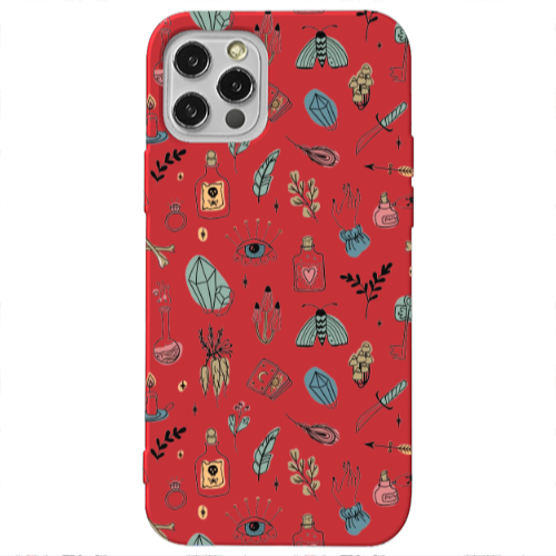 Apple iPhone 12 Pro Karışık Tarot Kırmızı Renkli Silikon Telefon Kılıfı