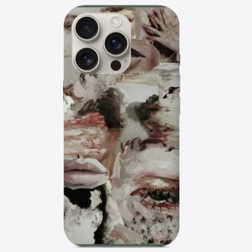 Apple iPhone 16 Pro Karışık Yüzler Koyu Yeşil Renkli Silikon Telefon Kılıfı
