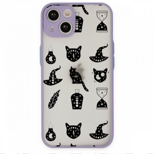 Apple iPhone 13 Kedi Şapka Lila Hux Telefon Kılıfı