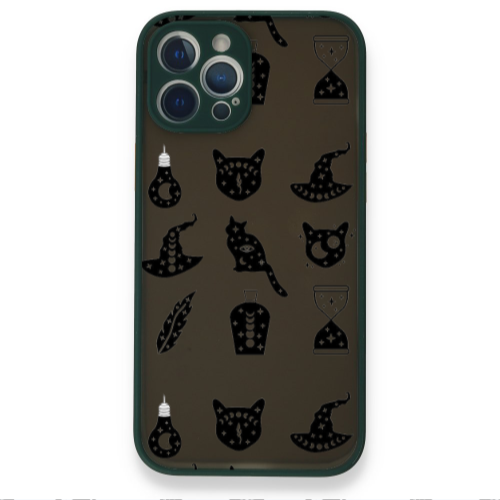 Apple iPhone 12 Pro Kedi Şapka Koyu Yeşil Hux Telefon Kılıfı