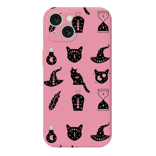 Apple iPhone 15 Plus Kedi Şapka Pembe Renkli Silikon Telefon Kılıfı