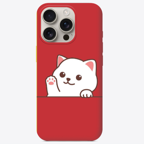 Apple iPhone 16 Pro Max Kedi Kırmızı Renkli Silikon Telefon Kılıfı