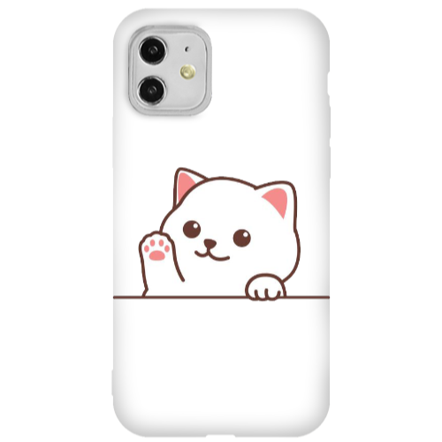 Apple iPhone 11 Kedi Beyaz Renkli Silikon Telefon Kılıfı