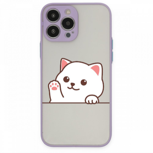 Apple iPhone 14 Pro Max Kedi Lila Hux Telefon Kılıfı