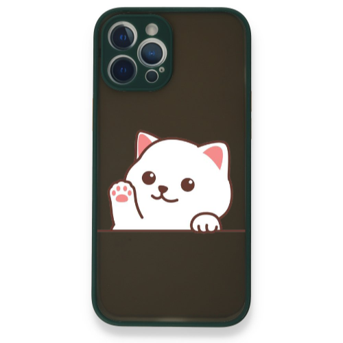 Apple iPhone 12 Pro Kedi Koyu Yeşil Hux Telefon Kılıfı