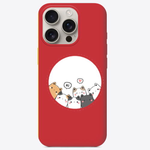 Apple iPhone 16 Pro Max Kediler Kırmızı Renkli Silikon Telefon Kılıfı