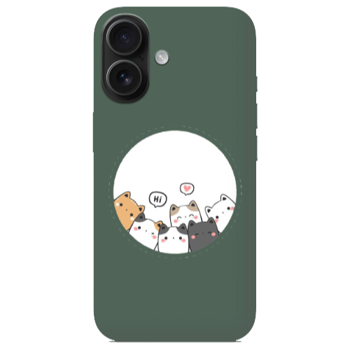 Apple iPhone 16 Kediler Koyu Yeşil Renkli Silikon Telefon Kılıfı