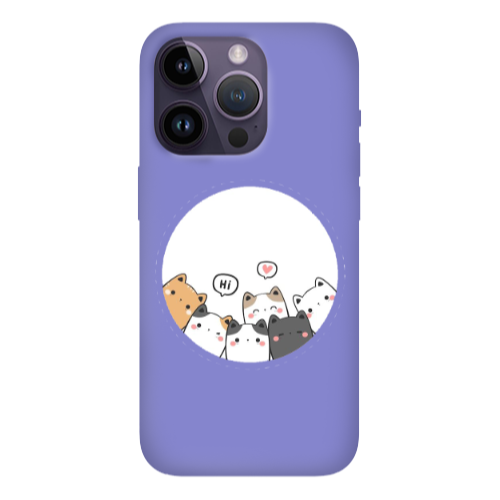 Apple iPhone 14 Pro Max Kediler Lila Renkli Silikon Telefon Kılıfı