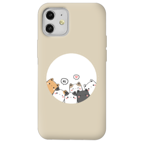 Apple iPhone 12 Mini Kediler Krem Renkli Silikon Telefon Kılıfı