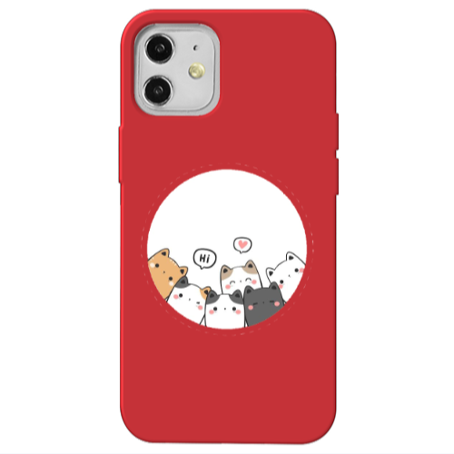 Apple iPhone 12 Mini Kediler Kırmızı Renkli Silikon Telefon Kılıfı