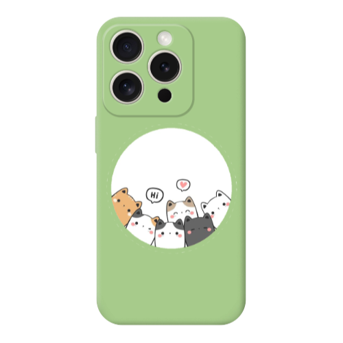 Apple iPhone 15 Pro Kediler Açık Yeşil Renkli Silikon Telefon Kılıfı