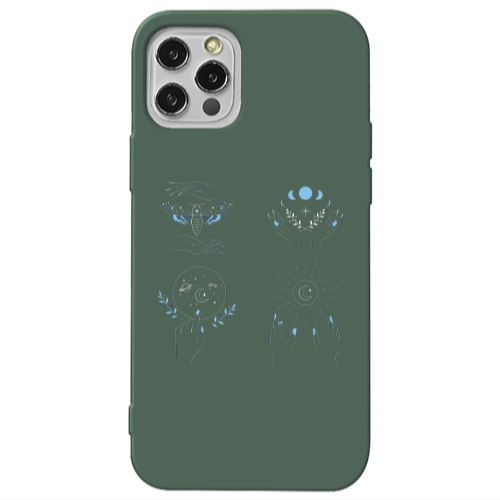 Apple iPhone 13 Pro Kelebek El Koyu Yeşil Renkli Silikon Telefon Kılıfı