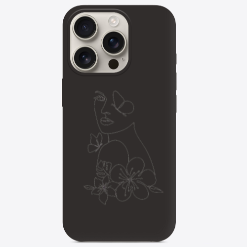 Apple iPhone 16 Pro Kelebek Kadın Siyah Renkli Silikon Telefon Kılıfı