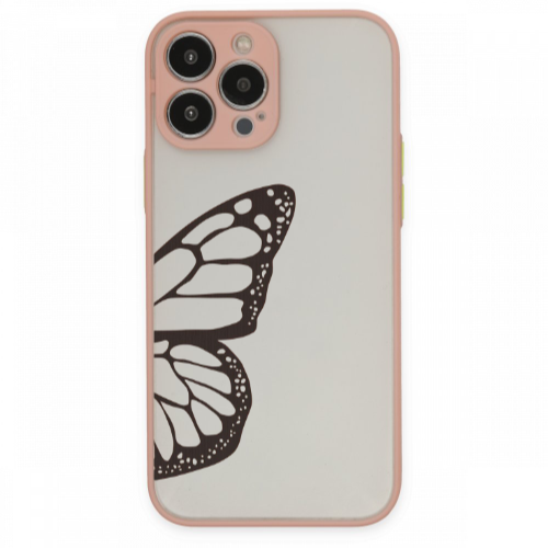 Apple iPhone 13 Pro Max Kelebek Kanadı Pembe Hux Telefon Kılıfı
