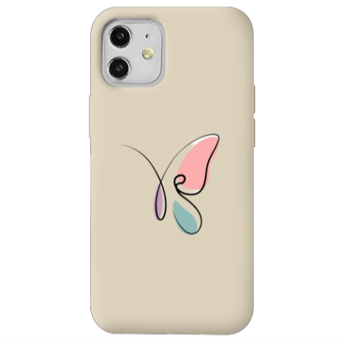 Apple iPhone 12 Mini Kelebek Line2 Krem Renkli Silikon Telefon Kılıfı