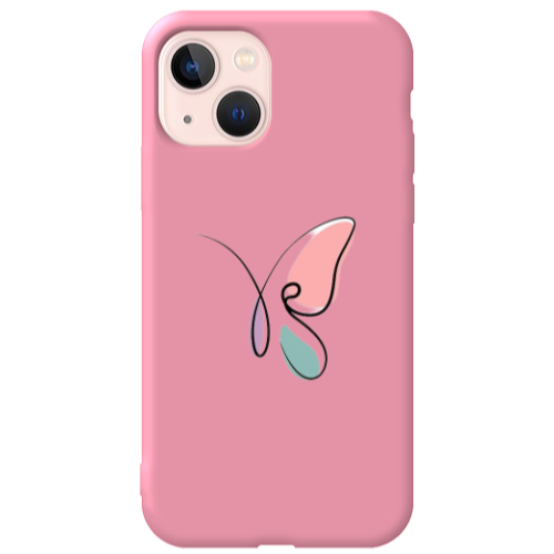 Apple iPhone 13 Mini Kelebek Line2 Pembe Renkli Silikon Telefon Kılıfı