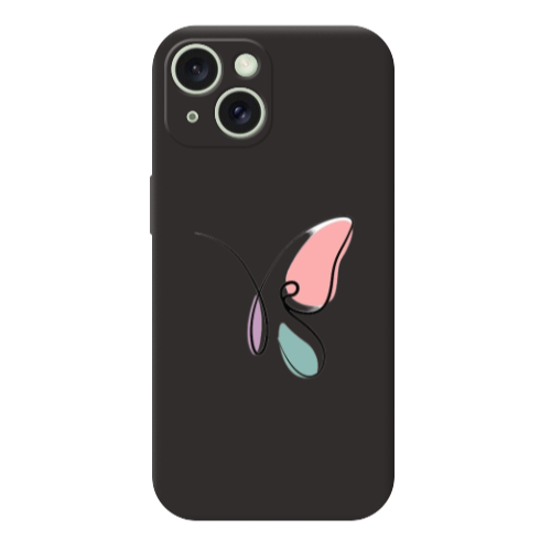 Apple iPhone 15 Plus Kelebek Line2 Siyah Renkli Silikon Telefon Kılıfı