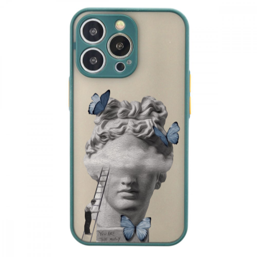 Apple iPhone 14 Pro Kelebek Merdiven Koyu Yeşil Hux Telefon Kılıfı