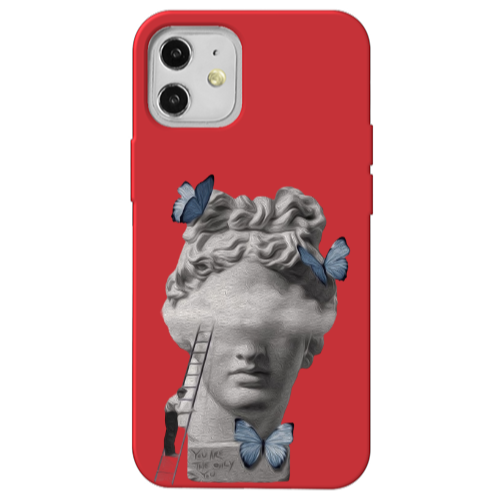 Apple iPhone 12 Mini Kelebek Merdiven Kırmızı Renkli Silikon Telefon Kılıfı