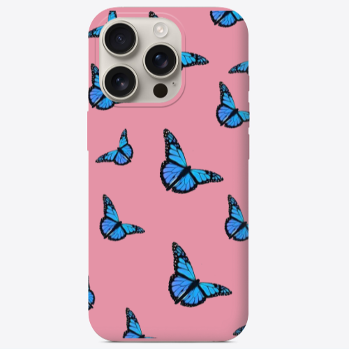 Apple iPhone 16 Pro Kelebekler Pembe Renkli Silikon Telefon Kılıfı