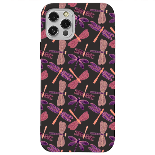 Apple iPhone 13 Pro Kelebekler2 Siyah Renkli Silikon Telefon Kılıfı