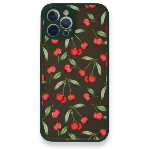 Apple iPhone 12 Pro Kiraz2 Koyu Yeşil Hux Telefon Kılıfı