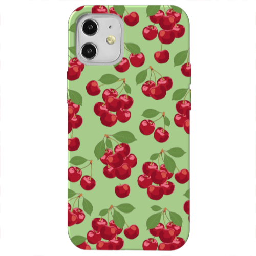 Apple iPhone 12 Kiraz Açık Yeşil Renkli Silikon Telefon Kılıfı