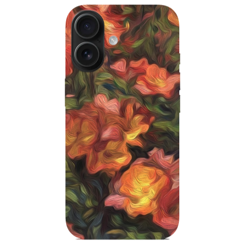 Apple iPhone 16 Plus Kırmızı Çiçek2 Kırmızı Renkli Silikon Telefon Kılıfı