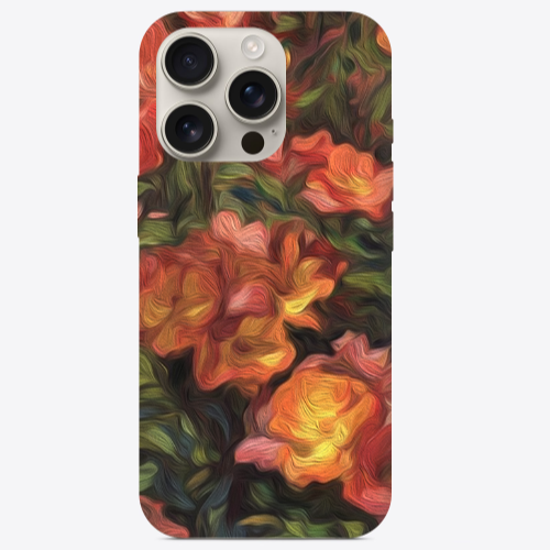 Apple iPhone 16 Pro Kırmızı Çiçek2 Koyu Yeşil Renkli Silikon Telefon Kılıfı