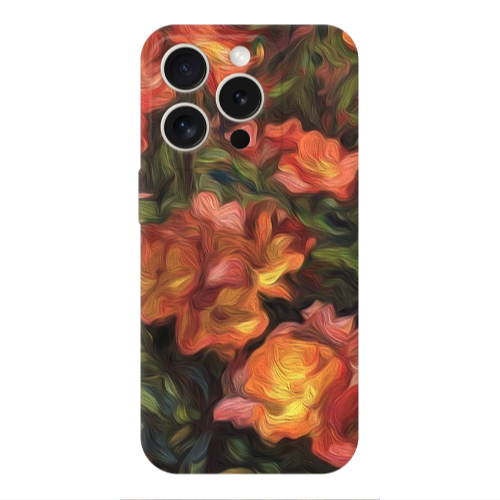 Apple iPhone 15 Pro Max Kırmızı Çiçek2 Açık Yeşil Renkli Silikon Telefon Kılıfı
