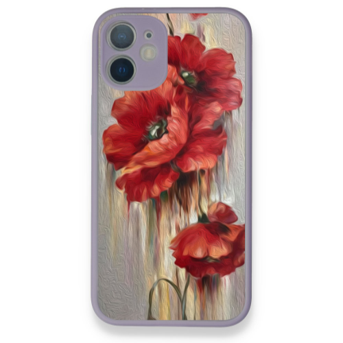 Apple iPhone 11 Pro Max Kırmızı Çiçek Lila Hux Telefon Kılıfı