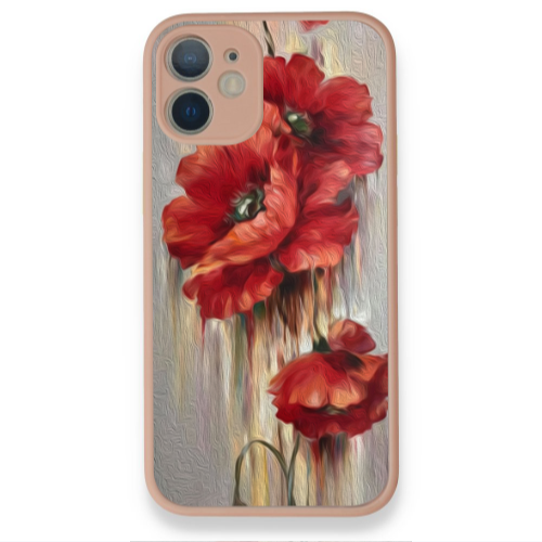 Apple iPhone 12 Mini Kırmızı Çiçek Pembe Hux Telefon Kılıfı