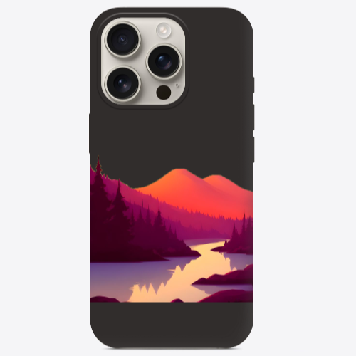 Apple iPhone 16 Pro Kırmızı Dağ Siyah Renkli Silikon Telefon Kılıfı