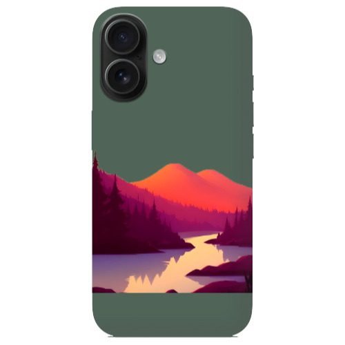 Apple iPhone 16 Kırmızı Dağ Koyu Yeşil Renkli Silikon Telefon Kılıfı