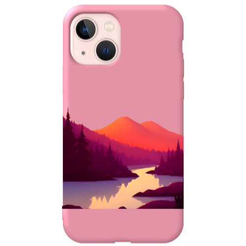 Apple iPhone 13 Kırmızı Dağ Pembe Renkli Silikon Telefon Kılıfı