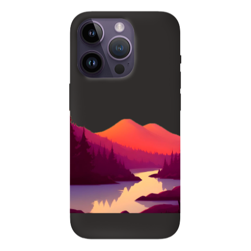 Apple iPhone 14 Pro Max Kırmızı Dağ Siyah Renkli Silikon Telefon Kılıfı